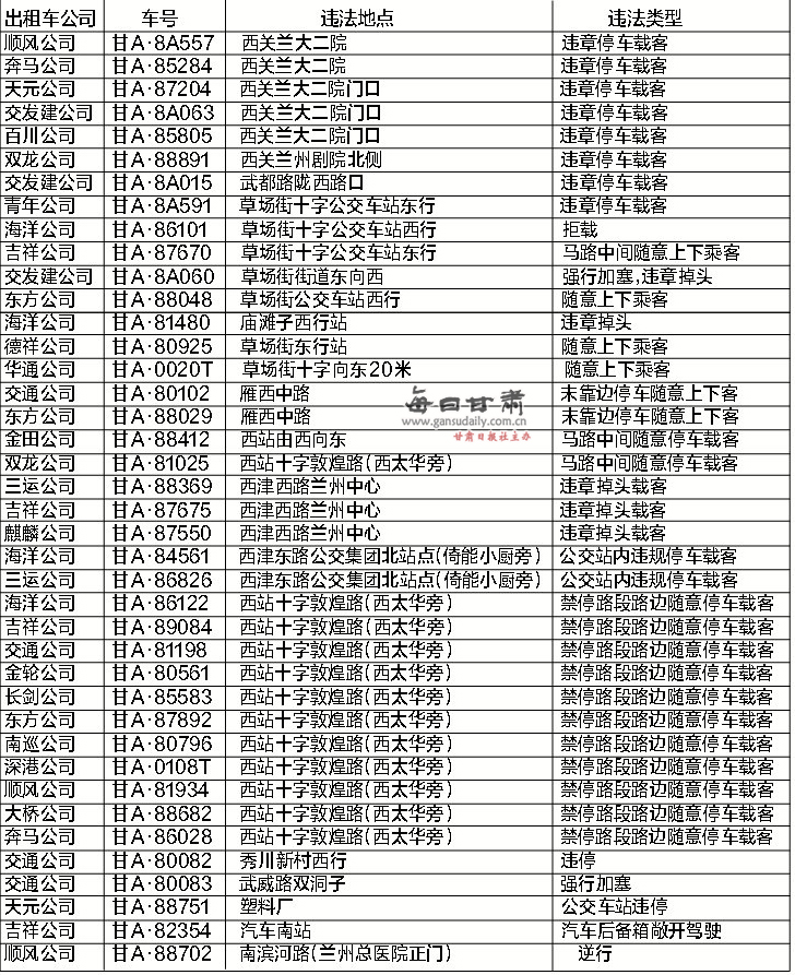 交通违法出租车一览表