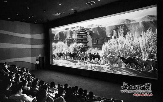 游客在莫高窟数字展示中心观看主题电影《千年莫高》。孙志军摄(资料图由敦煌研究院提供)