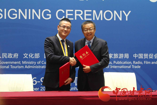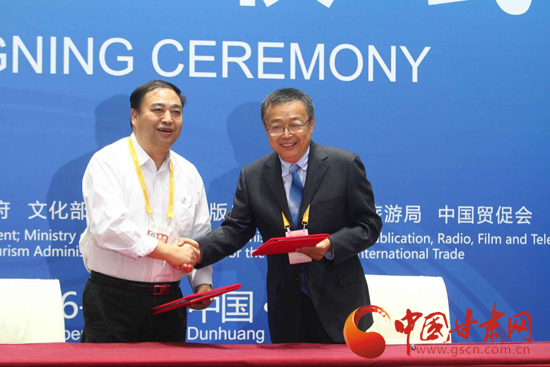 20日下午,首届丝绸之路(敦煌)国际文化博览会签约仪式中,甘肃省互联网领域四大项目正式签约。