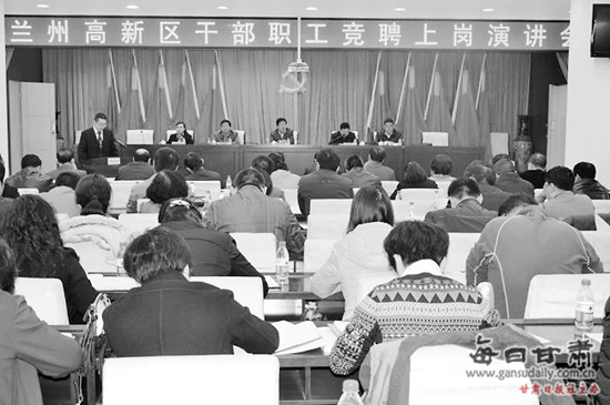 11月5日、6日,对兰州国家高新技术开发区(以下简称“兰州高新区”)的领导干部们而言很震撼,81位干部登上演讲台,竞聘50个相关部门内设机构正副职职位。这些职位并不是“闲职”,而是财政局国资处副处长等“含金量”很高的职位。在正式竞聘演讲开始之初,新选聘的8名干部公开亮相,向参会的领导和干部职工介绍了自己过去的工作经历和今后的打算。