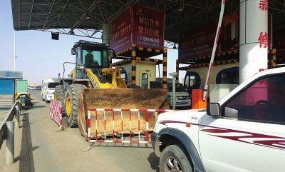 装载机强行冲卡堵瘫通道 靖远黄河大桥收费站是否撤销再引争议