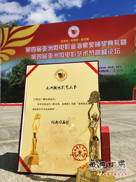 中国甘肃在线讯 11月7日,第四届亚洲微电影艺术节金海棠奖在云南临沧颁奖。由兰州广播电视台选送,兰州广播电视传播中心创作的微电影《路过我,温暖你》获得金海棠奖优秀作品奖(二等奖)。这是该片继获得2016年甘肃省微电影网络剧大赛一等奖后获得的又一大殊荣。
