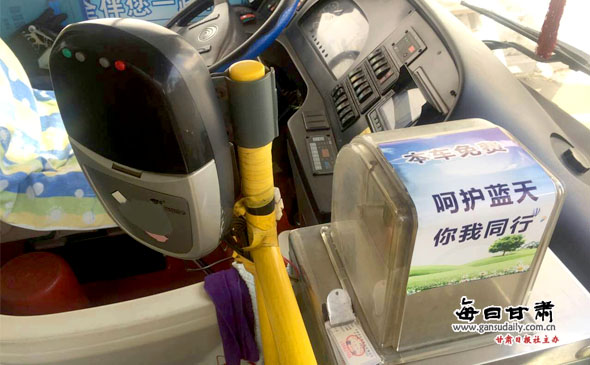 公交车上投币口贴着“本车免费”的封条,打卡器关闭(每日甘肃网记者郑唯/摄)