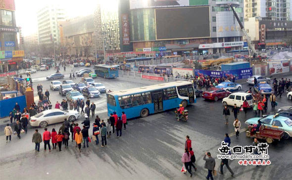 下午4时,西站十字实时路况,由东向西稍有拥堵(每日甘肃网记者郑唯/摄)
