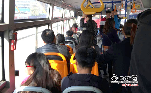 58路公交车上乘客较多,但也未发生拥挤现象(每日甘肃网记者郑唯/摄)