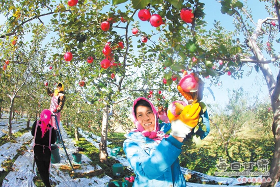 果农喜摘“金苹果”。本报通讯员赵彩霞