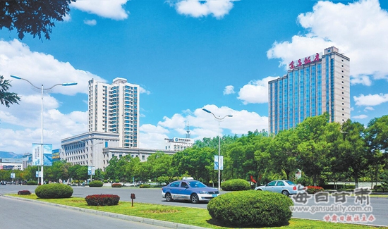 由于坚持不懈抓环境综合治理,金昌丽日蓝天,景色如画。