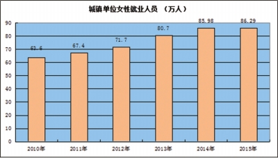 ●妇女就业及社会保障水平不断提高。五年来,开展各类职业技能培训199.6万人次,其中女性83.8万人次,占总数的42%,第三产业已经成为吸纳女性劳动力就业的主要渠道。妇女参加各项劳动保险参保率不断提高,女职工劳动保护政策得到进一步落实。