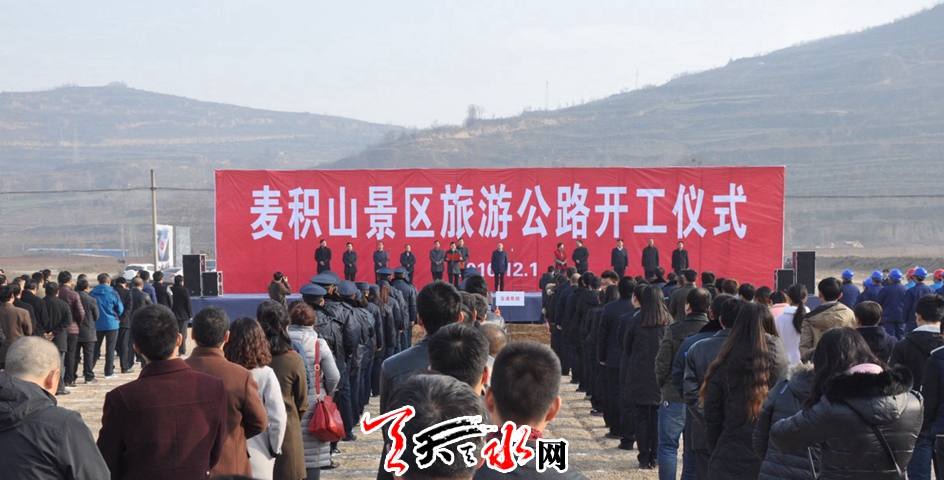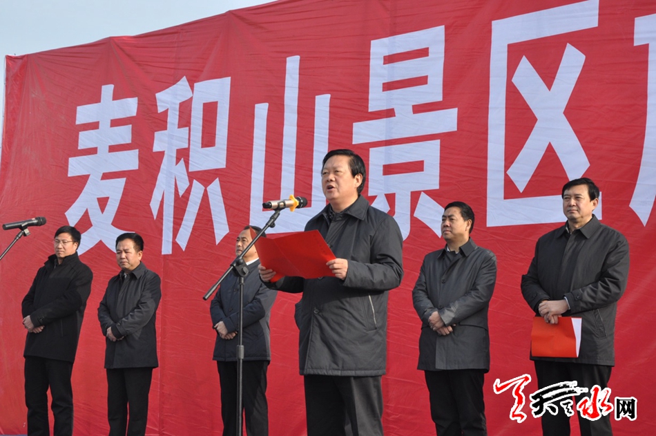 天水市委书记王锐宣布麦积山景区旅游公路项目开工。