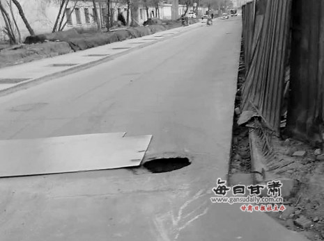记者踏访:当日,兰州晨报记者来到现场看到,马路当中窨井盖的确没有,而一旁正好在施工修路,用一块钢板铺在路面,但却没有遮住这个窨井。市民张先生说,15日早,他从此经过时,正巧见到一辆轿车前轮陷入没盖窨井中,虽然没有人员受伤,但车轮胎被刮破一个半米长的大口子。希望有关部门尽快给窨井补装井盖。