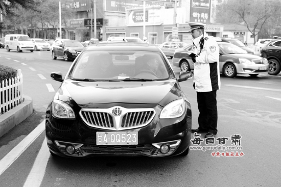 中国甘肃在线讯 兰州实行单双号限行已有一段时间了,但是好多车主还是不按规定出行。近日,兰州城关交警大队民警巡逻期间在城区主干道就遇到了不按规定出行的驾驶员,民警随即将车拦截,将限行通告的主旨耐心地解释给驾驶员,请他们能够遵守、支持单双号限行工作。(来源:每日甘肃网)