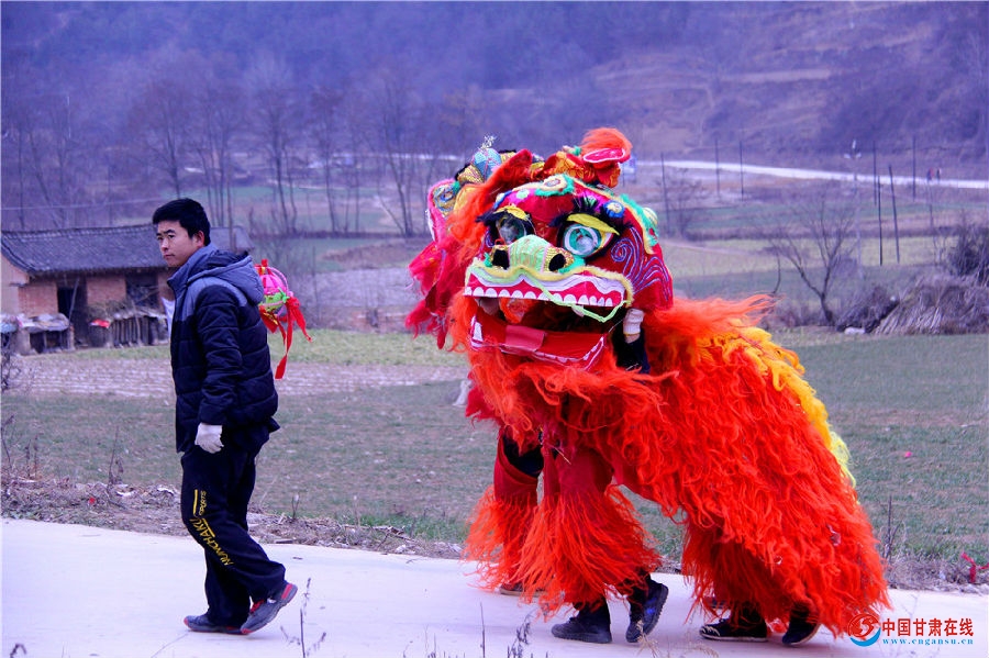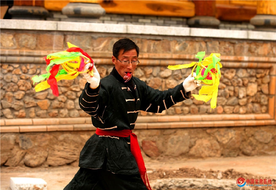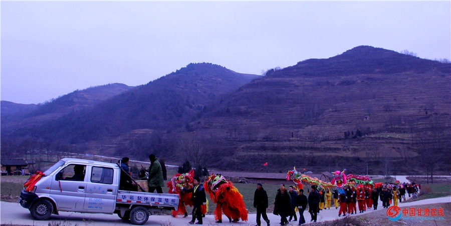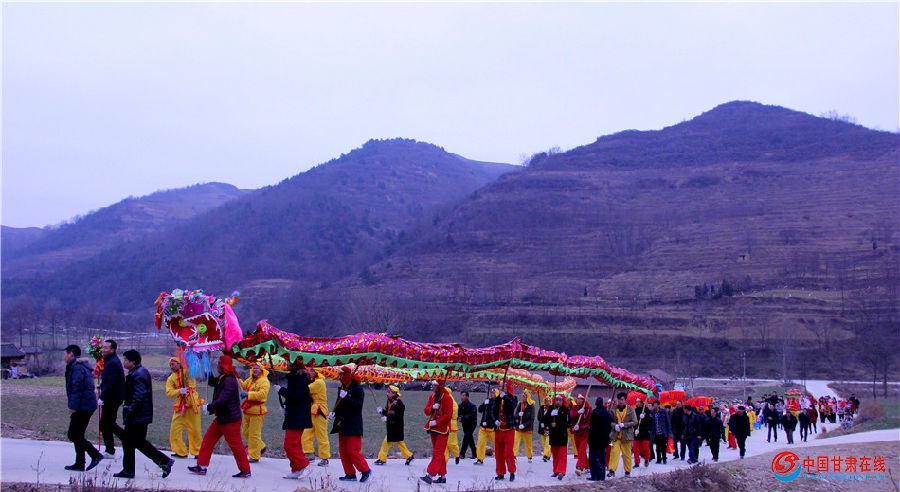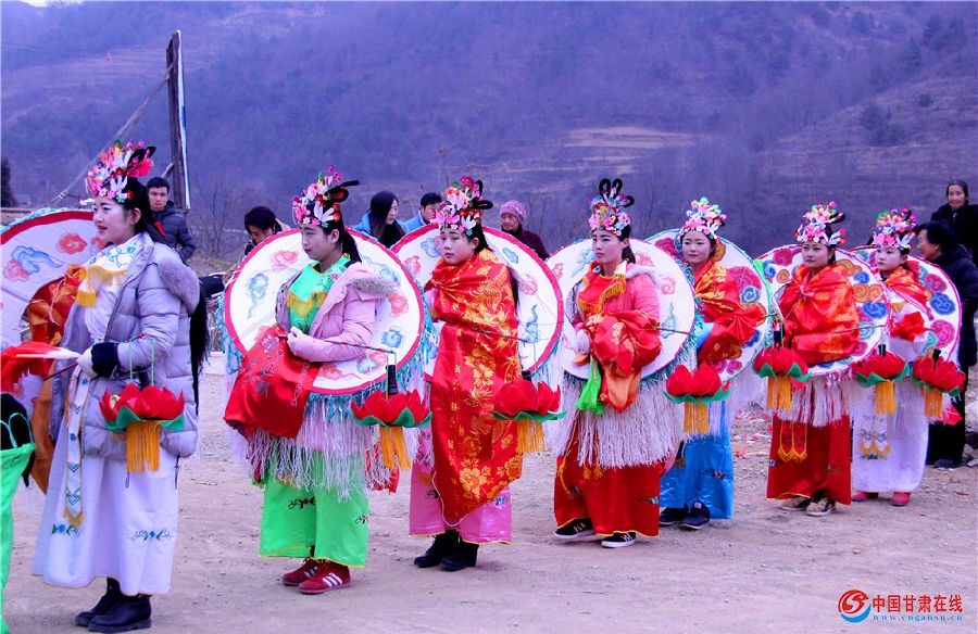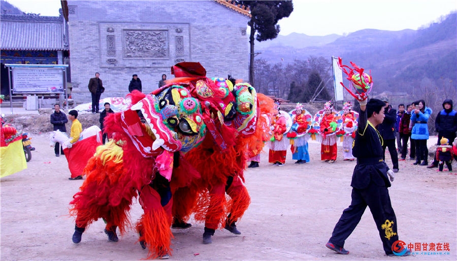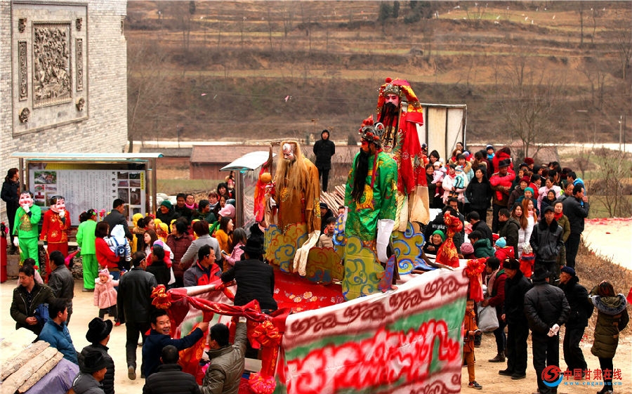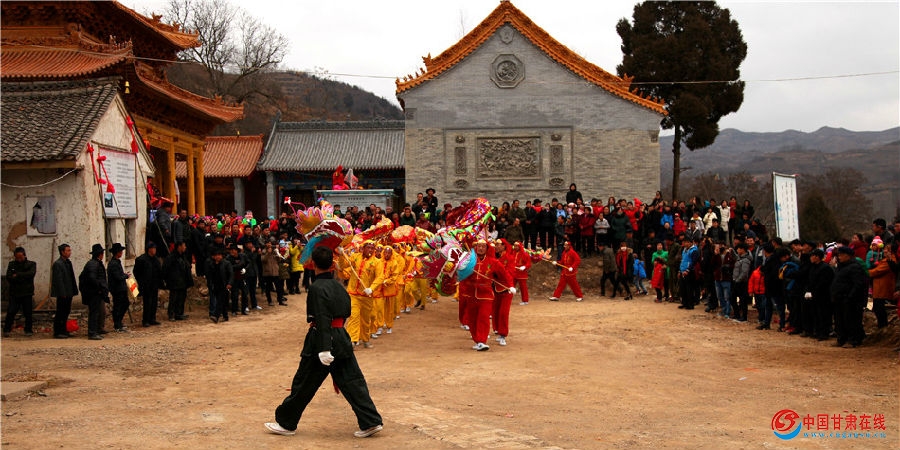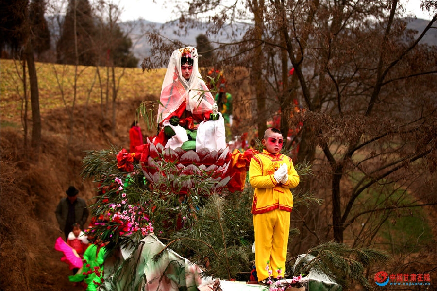 中国甘肃在线讯 (图/文:邓斌)2017年2月3日天水市秦州区汪川镇<茶马古道慈航寺>迎春社火演出。慈航寺风景区位于秦州区南路、五县交界处、东邻徽县、南邻成县、西南邻西和县、西礼县、北秦州,风景秀丽、是观光旅游的圣地。