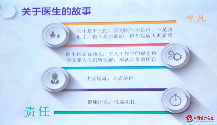 当天下午,50集道德模范系列微电影的主人公代表张森、欧阳兰京等还受邀参加了活动。2017年度兰州好人朱天垣用声情并茂的语言讲述了自己的从医故事,现场感人肺腑。