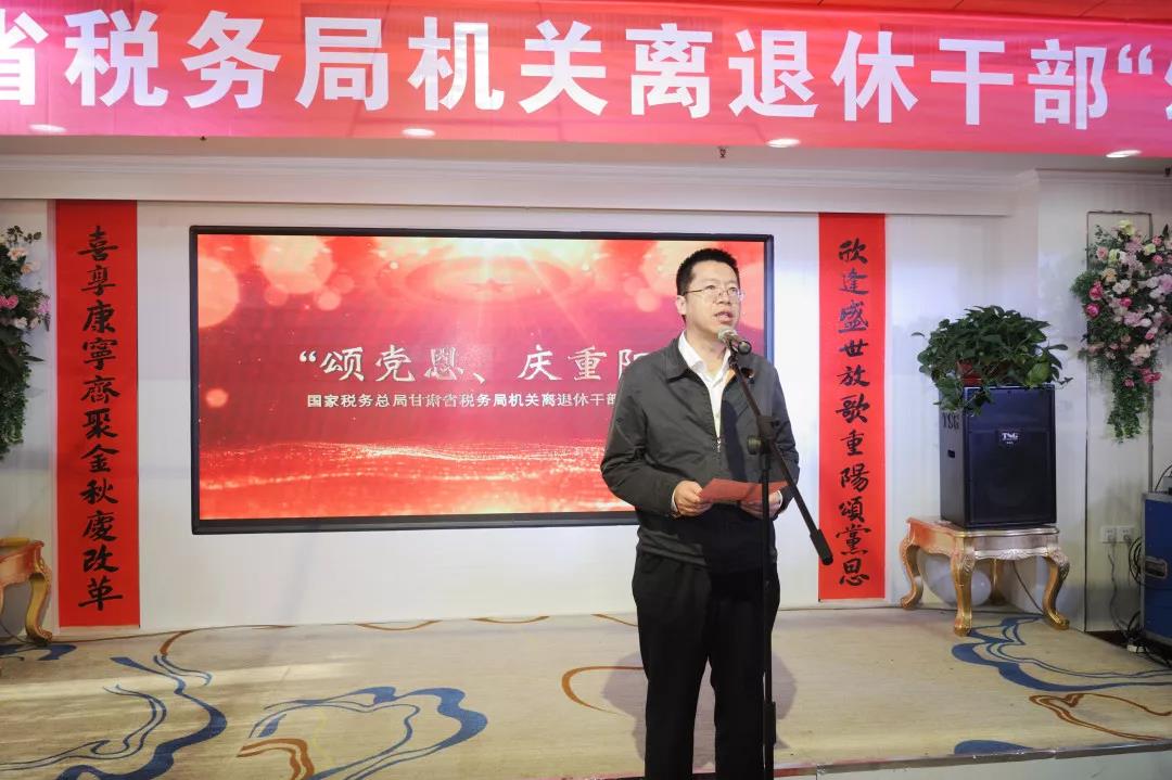原省国税局党组书记、局长杨继元代表老干部们也发表了真挚感言。他深情地说:今年的重阳节是税务系统机构合并后的第一个重阳节,也是时隔24年税务系统老干部再次融合、共同欢庆的节日。省局党委对老干部工作高度重视,政治上关心、工作上通报、生活上照顾,召开情况通报会,走访慰问老干部,开展学习参观和党日活动等,为老干部的融合开展了很多暖心又扎实的工作。我代表老干部们感谢以习近平同志为核心的党中央,感谢省局党委的关心和厚爱,衷心祝愿甘肃税务事业的明天更加辉煌。