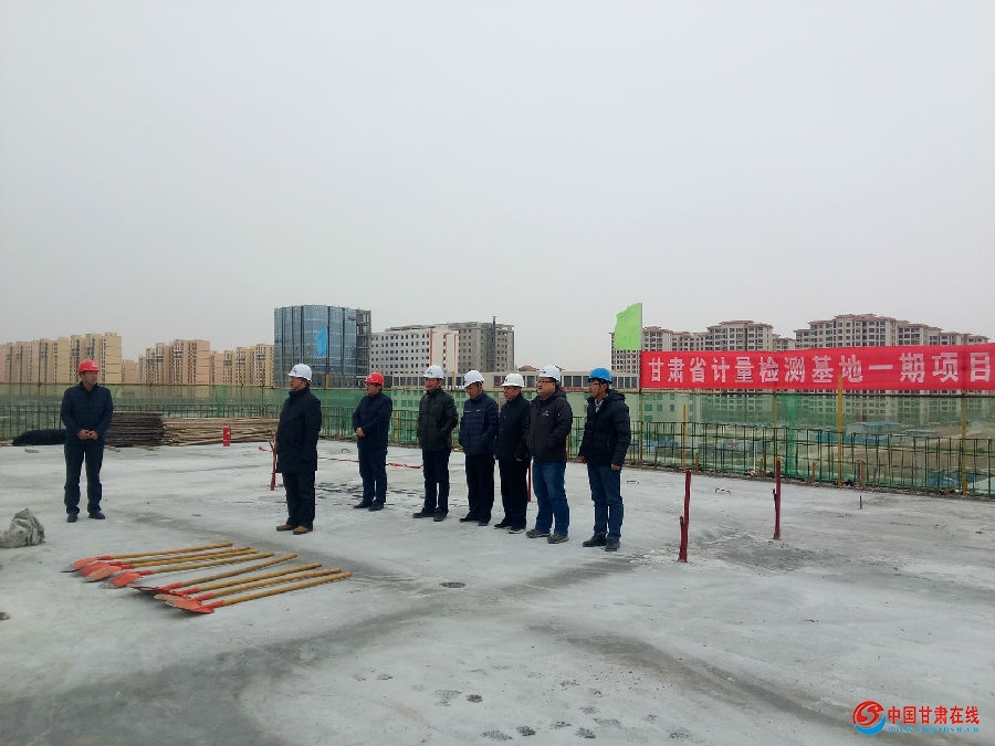 2018年12月27日上午,位于兰州新区的甘肃省计量研究院检测基地一期项目施工现场内洋溢着浓浓的喜气。该院党委书记、院长宋光辉,副院长谢志明、杨峻涛、赵鹏和各参建单位代表在此相聚,共同见证恒温检测大楼顺利封顶。