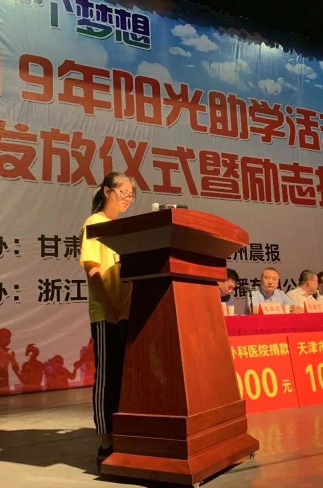 8月19日,由甘肃省慈善总会、兰州晨报联合开展的“阳光助学金发放仪式暨励志报告会”在人民剧院大礼堂举行。省人大常委会原副主任、省慈善总会会长朱志良,省慈善总会常务副会长肖庆平、省教育厅副厅长徐宏伟,省民政厅副厅长王福德,省慈善总会副会长张和平,兰州晨报编委陈国宁、李海生、李海波,省教育厅学生资助管理中心主任李小平,省中医药大学中医临床学院党委书记王世栋,省福利彩票发行管理中心副主任姜社权以及受助学生和家长、爱心企业代表、社会各界爱心人士等近千人参加了助学金发放仪式和励志报告会。