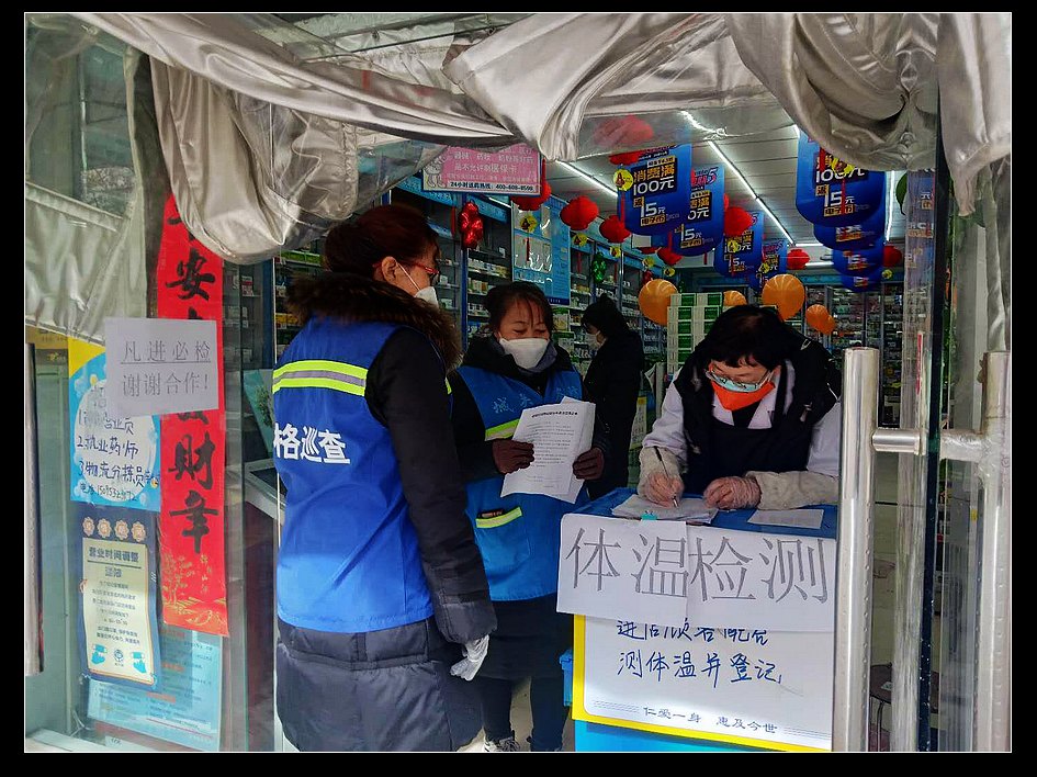 严把生产安全,深化宣传引导。为保证复工复产五小行业商铺安全经营、有序管理,社区指导五小行业商铺在疫情期间实行登记管理,设置检测岗,配备测温枪,保持店内外环境卫生整洁,每日消毒,做好消毒记录。加强对员工及消费者的疫情防控宣传引导,沙洼河社区在辖区商铺人员聚集的醒目位置悬挂疫情防控宣传条幅、张贴通告,切实提高复工复产五小行业商铺的员工和消费者的防范意识。