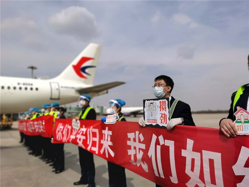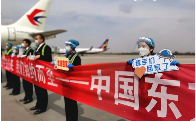 敬爱的白衣战士们:我是本次航班的机长。白衣执甲,今朝凯旋。逆行的白衣战士们,你们用救死扶伤的大无畏精神奋战于生命第一线!用执着和坚守诠释着“大医精诚”!昨日你们为爱而战,今日荣耀归来的你们是这繁花三月最为绚烂的春色!谢谢你们,为中国拼过命!送你们去武汉的时候,我们就答应过把你们一个也不能少的接回家,今天,我们如约而至,来接你们回家!你们离开的时候,还是天寒地冻,阴霾笼罩,如今家乡已是春意盎然、梨花开放,是你们的大爱让这个春天与众不同,分外妖娆。在此,作为一个土生土长的甘肃人、一名中国东方航空的员工,我谨代表中国东方航空向各位白衣战士,致以最崇高的敬意和由衷的感谢。亲人们,我们回家了!
