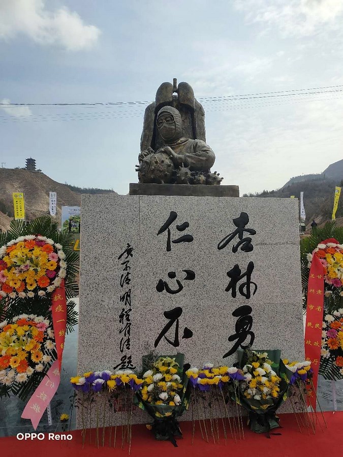 中国甘肃在线讯(文/图:宋明万)2020年4月4日,为深切缅怀和纪念在抗击新冠肺炎疫情中英勇牺牲的34名医护工作者,甘肃首个“逆行者”塑像揭幕暨白衣天使纪念园奠基仪式在甘肃卧龙岗报恩堂生命纪念园举行!