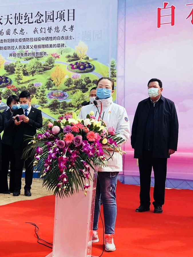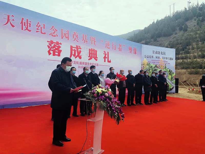 甘肃卧龙岗园林公墓有限公司董事长宗荣先生在致辞中说,今天我们在这里举行“逆行者”塑像揭幕典礼暨白衣天使纪念园奠基仪式,是为了缅怀白衣战士,为了秉承遗志,奋勇前行。