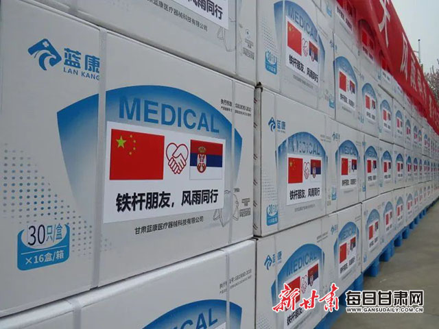 面对世界疫情形势严峻、防护物资需求增大的实际,甘肃蓝康医疗器械科技有限公司开足马力扩大生产,在保证国内需求的同时,积极组织外援出口,先后通过甘肃外事办、中国医药集团向罗马尼亚、西班牙、法国、塞尔维亚等5个国家出口医用防护口罩88万只、防护服1万件。