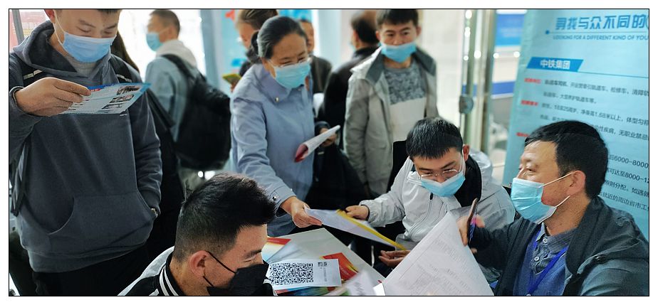 总部在兰州的中铁二十一局也是这次招聘活动中求职者的热门单位,招聘台前挤满了咨询的求职者,求职者纷纷表示能在央企工作肯定稳定待遇好。