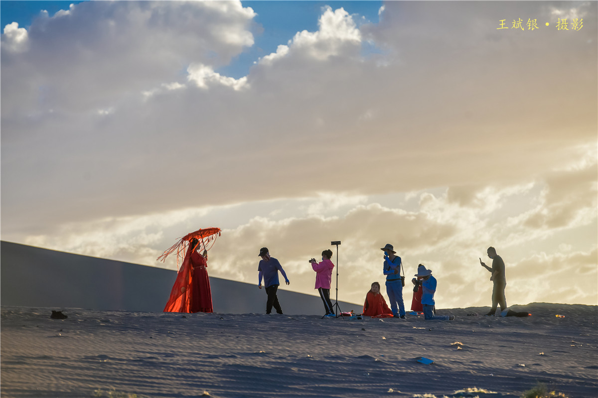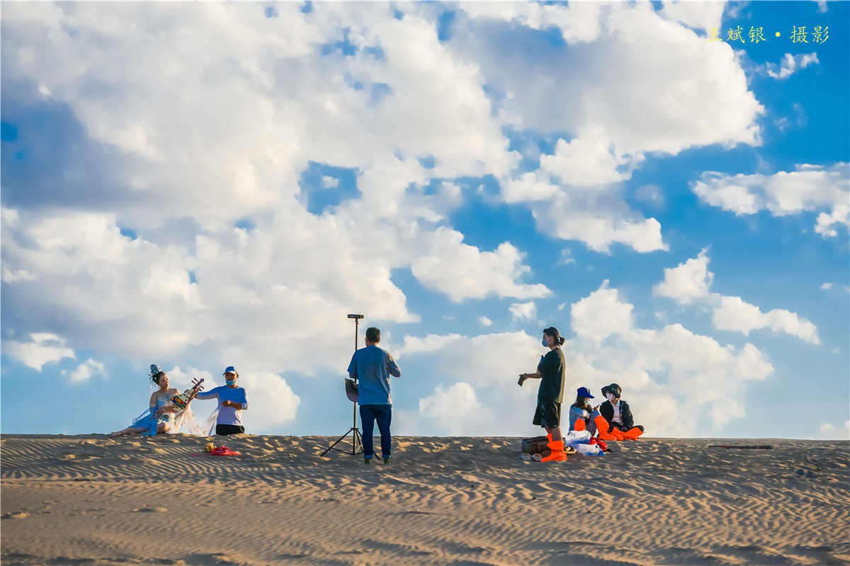 6月3日端午节,随着跨省旅游业务的逐步放开,沉寂良久的敦煌大漠再度热闹起来。敦煌鸣沙山月牙泉景区的大漠旅拍热悄然兴起。(王斌银 文/摄影)