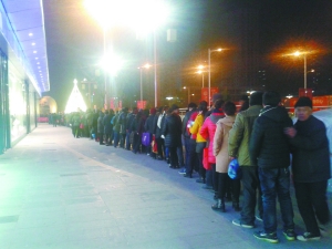 和许多直接进入商场休闲的青年人不同,张桂兰是来领“新年福蛋”的。据此前的广告宣传,从2014年12月31日到2015年1月3日,商场会在几个固定的时间点向市民发放“新年福蛋”,只要到现场排队,每人每次可以免费领取4个鸡蛋。和张桂兰一样来领取免费鸡蛋的人排起了近千米的长龙,队伍中以老年人居多,有些全副武装,只留下一双眼睛露在外面,有些结伴而来“赶队”,一边排队一边拉着家常。
