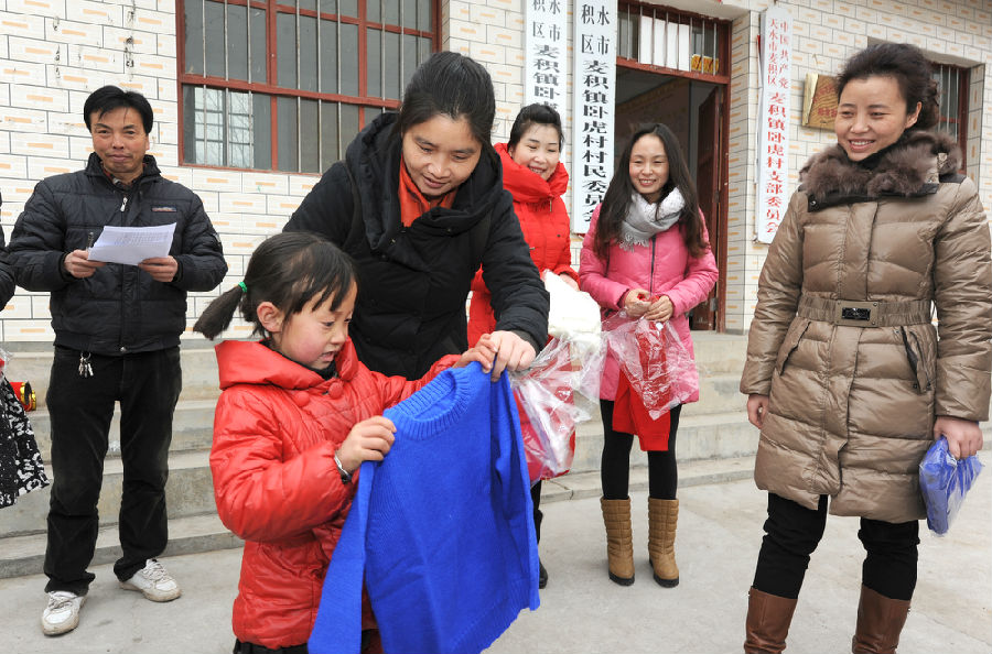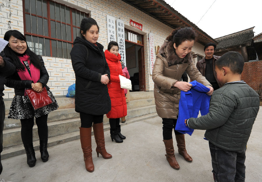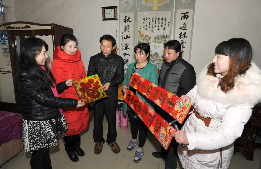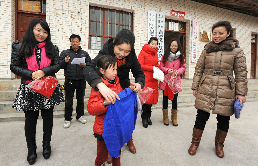 当天,区妇联工作人员在麦积镇负责人的引导下,先后看望慰问了10户双联户和困难户,为他们送去了大米和食用油;并为40名困难儿童和留守儿童每人赠送了1件“恒源祥”毛衣;还为村委会赠送了2个大红灯笼、为全村100多户村民送去了春联和“福”字,系列“送福到家”活动让双联村父老乡亲感受到了党的温暖和妇联全体工作人员的真挚祝福。