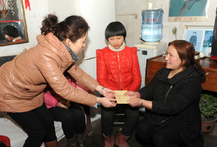 “他们一家虽然生活困难,但很和睦,夫妻二人从不吵架,为了给姑娘治病,欠债较大。这次区妇联为他们送温暖、献爱心,真是雪中送炭,让他们感受到了组织的温暖和新春祝福。”麦积区桥南街道办事处龙园社区副主任龚品说。(窦耀辉)
