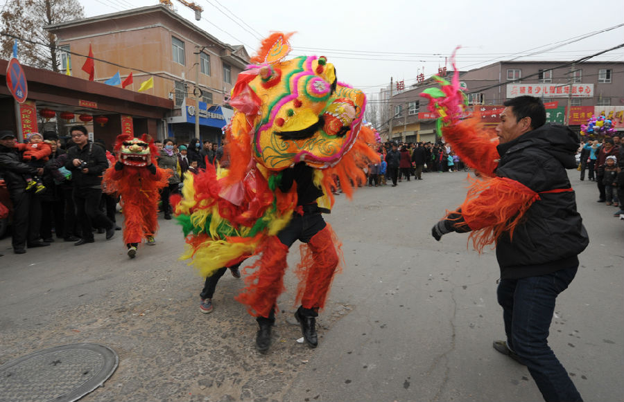 雄狮狂舞辞旧岁,金羊奋蹄报春来。2月27日(农历正月初九),麦积区棠镇主街道沿线人潮涌动、鼓乐喧天,热闹非凡,该镇2015年“金羊闹春”社火汇演活动在这里精彩上演。