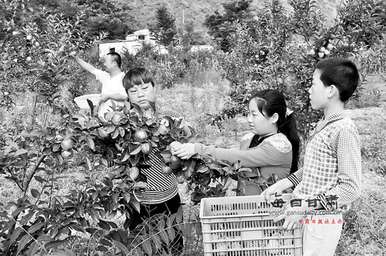 7月12日,成县苹果种植户刘明一家在自家果园里采摘早熟苹果。近年来,成县不断扩大特色经济林种植面积,全县种植苹果、金太阳杏、西洋樱桃、油桃达6万多亩。本报通讯员 马步虎