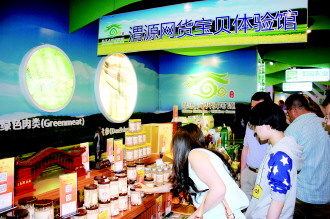 渭源网货宝贝体验馆是全市首家入驻淘宝网特色中国甘肃馆的县级馆。该馆整合全县40家企业、110家网店入驻,网货宝贝有17个品牌40多种,采取线下体验,线上购买的运营方式,向外集中展现渭源县生态文化旅游、马铃薯种薯、中医药、草食畜牧业四大支柱产业,推进农特产品网上交易。图为日前游客在该馆前驻足观看。 谢学森摄