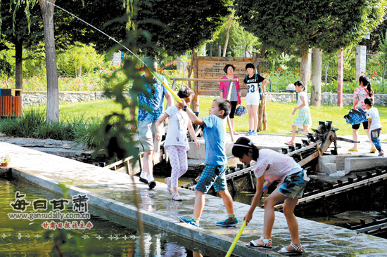 7月13日,兰州进入““三伏天”,最高气温为32.1℃。图为小朋友们在兰州水车博览园水池边享受清凉。本报首席记者裴强摄