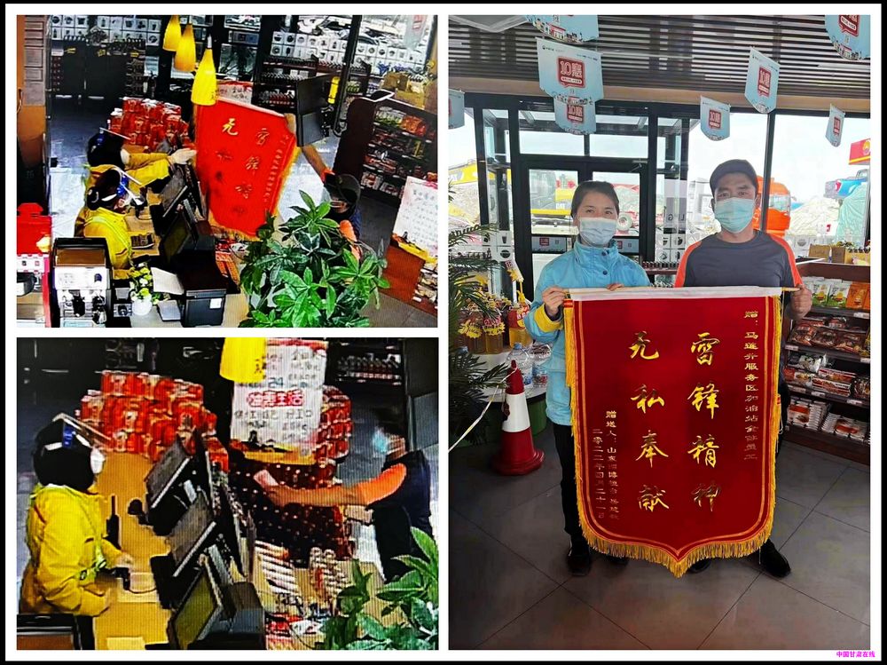 中国甘肃在线讯 “太感谢你们了,为了表示感谢,这些是心意,请你们务必收下!” 2022年4月24日下午16点左右,中国石油交通公司马莲井加油气站营业室走进来一位顾客,拿出一面锦旗和一沓现金放到收银台,收银员张玉娇看到此景立即向值班经理张晓明...