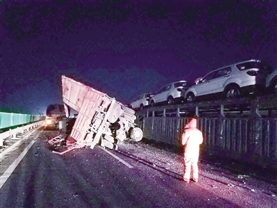 事故现场 西部商报首席记者金奉乾供图  中国甘肃在线讯 12月18日清晨6时30分许,G30古永段K1937公里处(武威凉州区境内),由东向西方向3辆大货车相撞,其中一辆大货车车体严重报废,翻在路中间,这起3车连撞事故造成...
