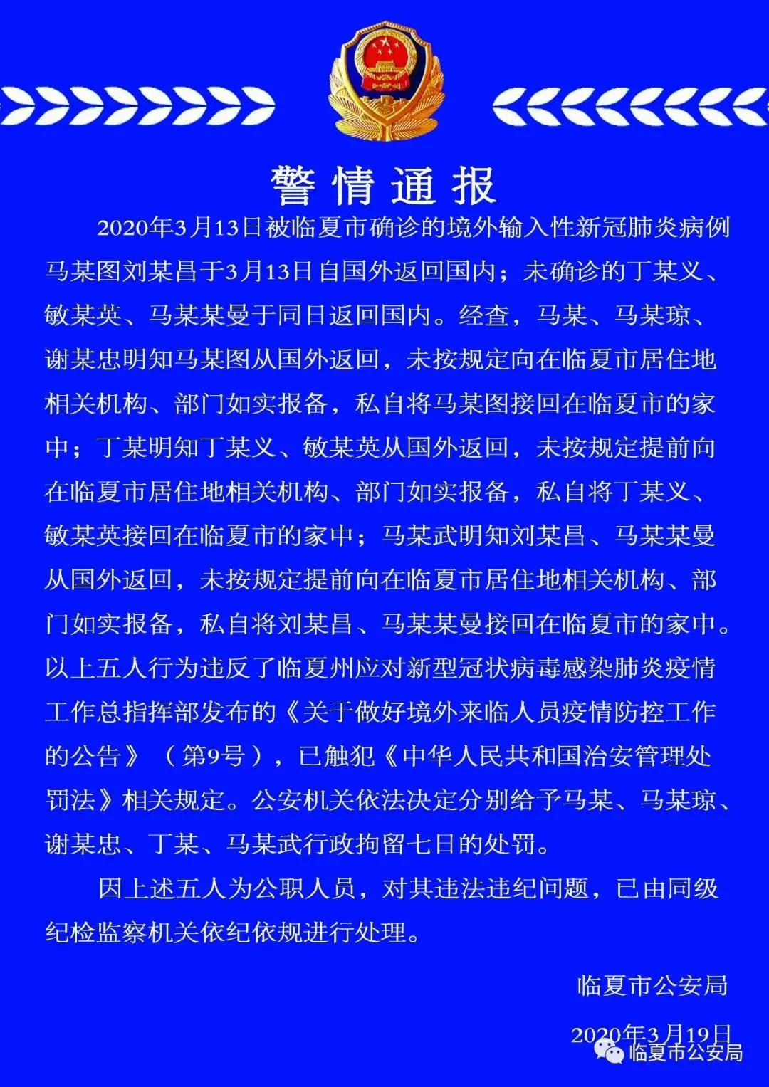 • 隐瞒入境人员信息,甘肃省临夏市5人被行政拘留