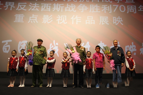 学生代表向参加过抗战的离休干部献花致敬。  为纪念中国人民抗日战争暨世界反法西斯战争胜利70周年,由甘肃省委宣传部、省新闻出版广电局主办的“纪念中国人民抗日战争暨世界反法西斯战争胜利70周年重点影视作品展...