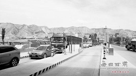 收费员换班吃午饭 司机高速路上排长队晒太阳  京藏高速海石湾出口堵车1公里收费站员工称人手不够8月7日中午,京藏高速公路海石湾出口收费站前等待出站的车辆绵延1公里。本报首席记者张学江摄  兰州晨报讯(首席...