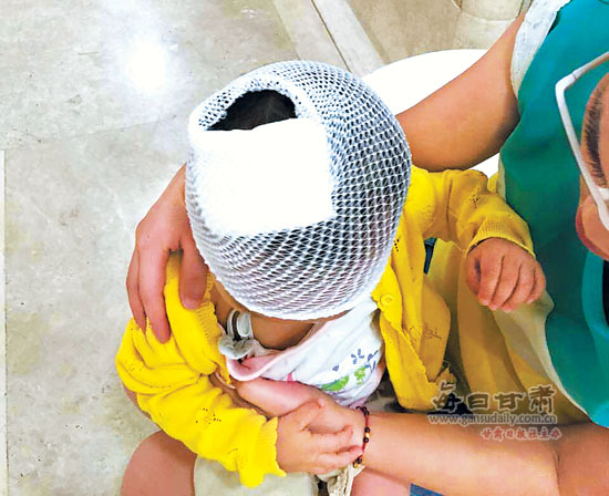 天降桃核砸伤幼童事发盐场堡新区,医生称不排除小孩头颅内部受伤可能  右图为受伤的幼童。本报首席记者崔亚明摄  甘肃日报讯(首席记者崔亚明)一枚从天而降的桃核正好砸中楼下年仅1岁8个月的小朋友的头部,这惊险...