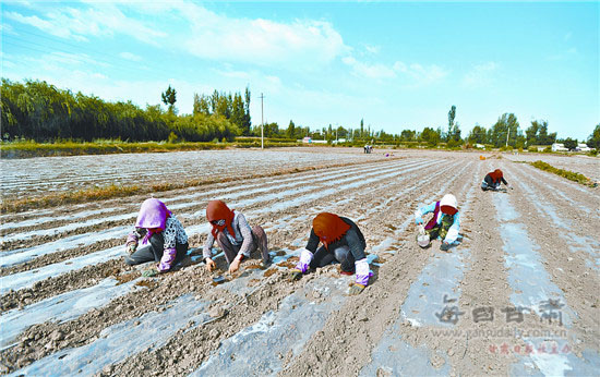 炎炎夏日,工人在甘州区清绿金源高原夏菜品种示范园区里种植经济作物。该园区着重高原夏菜的标准化栽培技术示范,引进推广优质新品种,提高了种植效益,推动了当地现代农业的发展。本报记者盛学卿...