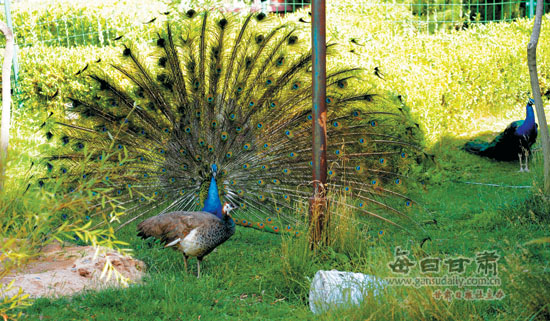 近日,在兰州水车博览园,一只孔雀展开尾屏,享受夏日“浪漫”。本报首席记者裴强摄...
