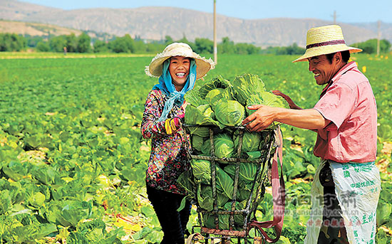7月29日,安定区内官营镇乌龙村菜农在采收甘蓝。近年来,安定区依托气候与区位优势,引导农民种植甘蓝、芹菜等高原夏菜,使其成为当地群众脱贫致富的支柱产业之一。本报通讯员陈永刚...