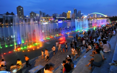 近来,持续的闷热天气让兰州音乐喷泉成为“避暑胜地”。首席记者于永昭摄   据兰州晚报报道(记者滕效宏)7月30日,金城依旧是烈日当头,白天的高温比前天略高一些,达到了37.2℃。根据最新气象资料分析,预计今...