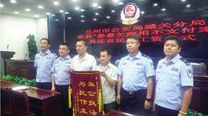 ◇记者金振华 特约记者冯忠海 文/图  科技鑫报讯 7月28日,当8名农民工从城关公安分局民警手中接过自己被老板拖欠的血汗钱时,每个人都显得激动不已。原来,今年4月29日,城关分局治安管理一大队在破获首例因拒...