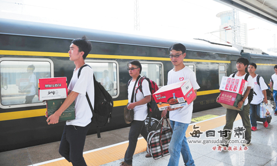 7月23日,2015年甘肃省大学生西部计划志愿服务启动,赴西藏开展志愿服务的20名大学生背上行囊从兰州火车站出发。  本报首席记者裴强摄...