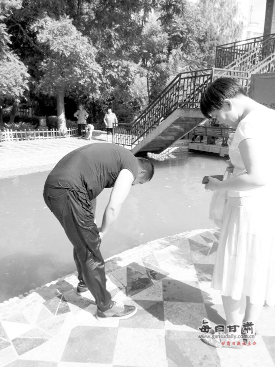 救人的男青年浑身湿透。本报通讯员南水清本报记者张学江摄  兰州晨报讯(首席记者张学江 实习生马凯) 7月19日下午4时50分左右,兰州金城盆景公园突然传出呼救声,一名四五岁的小男孩不慎落入湖水中。这时,一名听到...