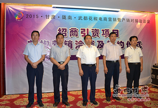 2015陇南武都花椒电商营销暨产销对接洽谈会在武都区举行。 项目签约现场。  每日甘肃网陇南讯(记者冀晋存 见习记者谢俊科) 7月22日,2015陇南武都花椒电商营销暨产销对接洽谈会在武都区举行。节会期间集中签约招...