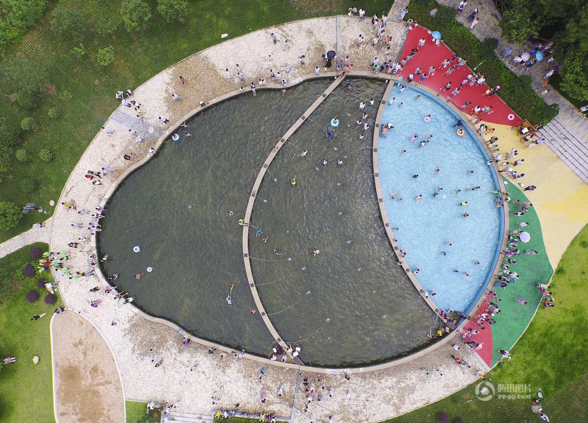 2015年7月29日,浙江衢州,高温酷暑中,开化县某村的大型游泳池吸引了众多村民和游客,成为该乡村公园的一道亮丽风景。东方IC