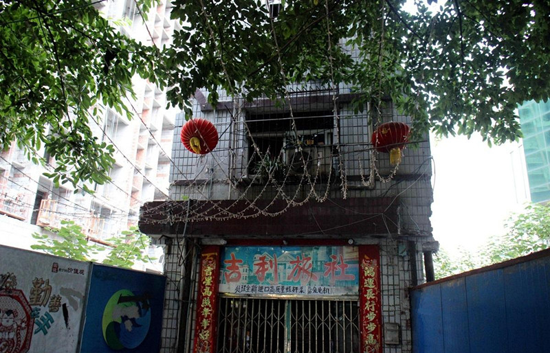 据悉,该房屋产权人拒绝拆迁,开发商将周围房屋拆除后留下的场景,本是20几个门面构成的房屋现在仅仅剩下1个门面位置,业主继续经营着这家小旅馆,成为“楼薄薄”,被市民称作“最牛钉子旅馆”。